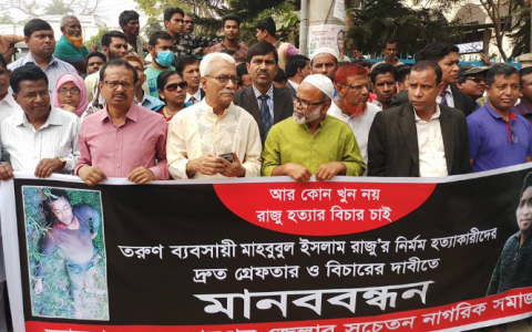 শেরপুরে রাজু হত্যার বিচারের দাবীতে মিছিল, মানববন্ধন ও স্বারকলিপি প্রদান
